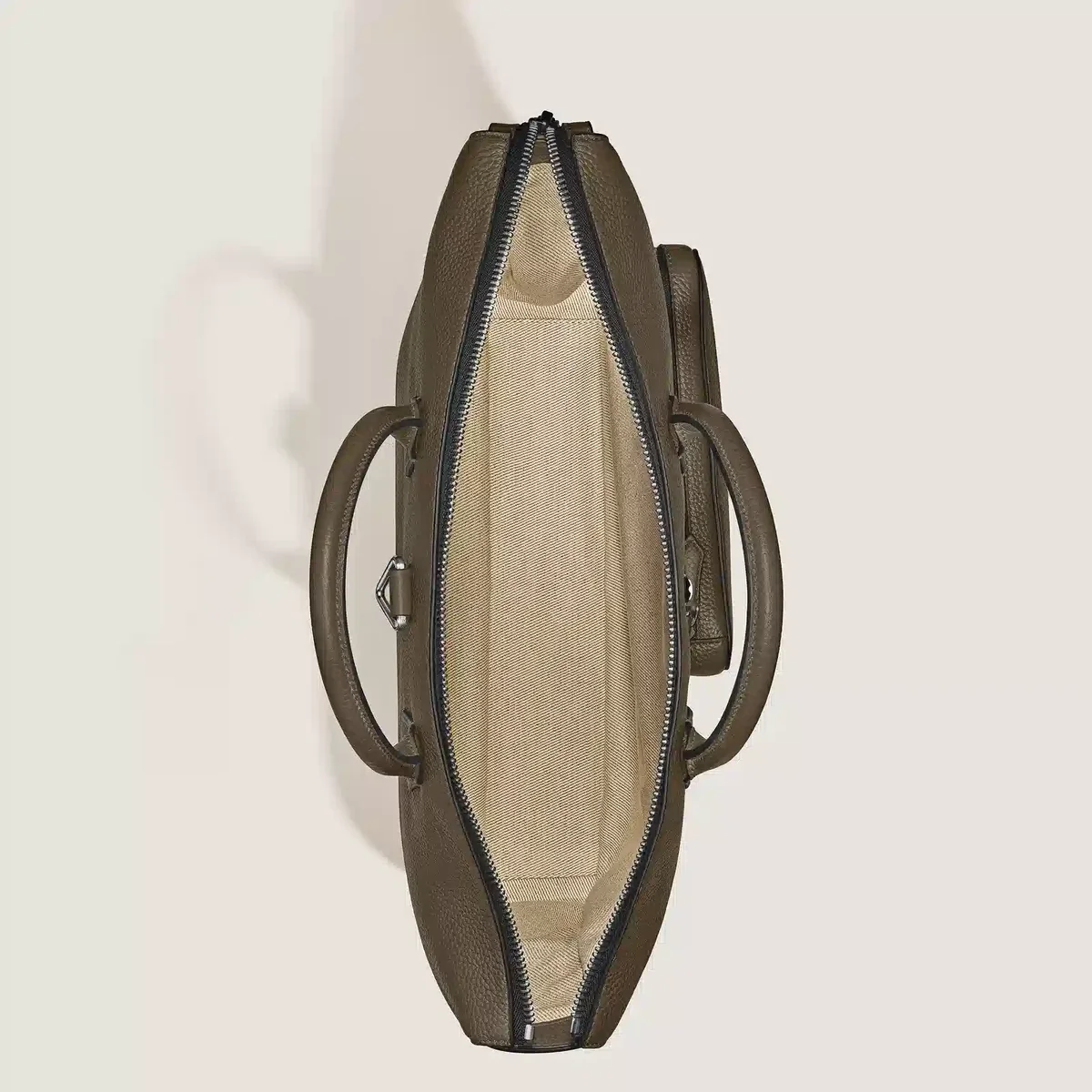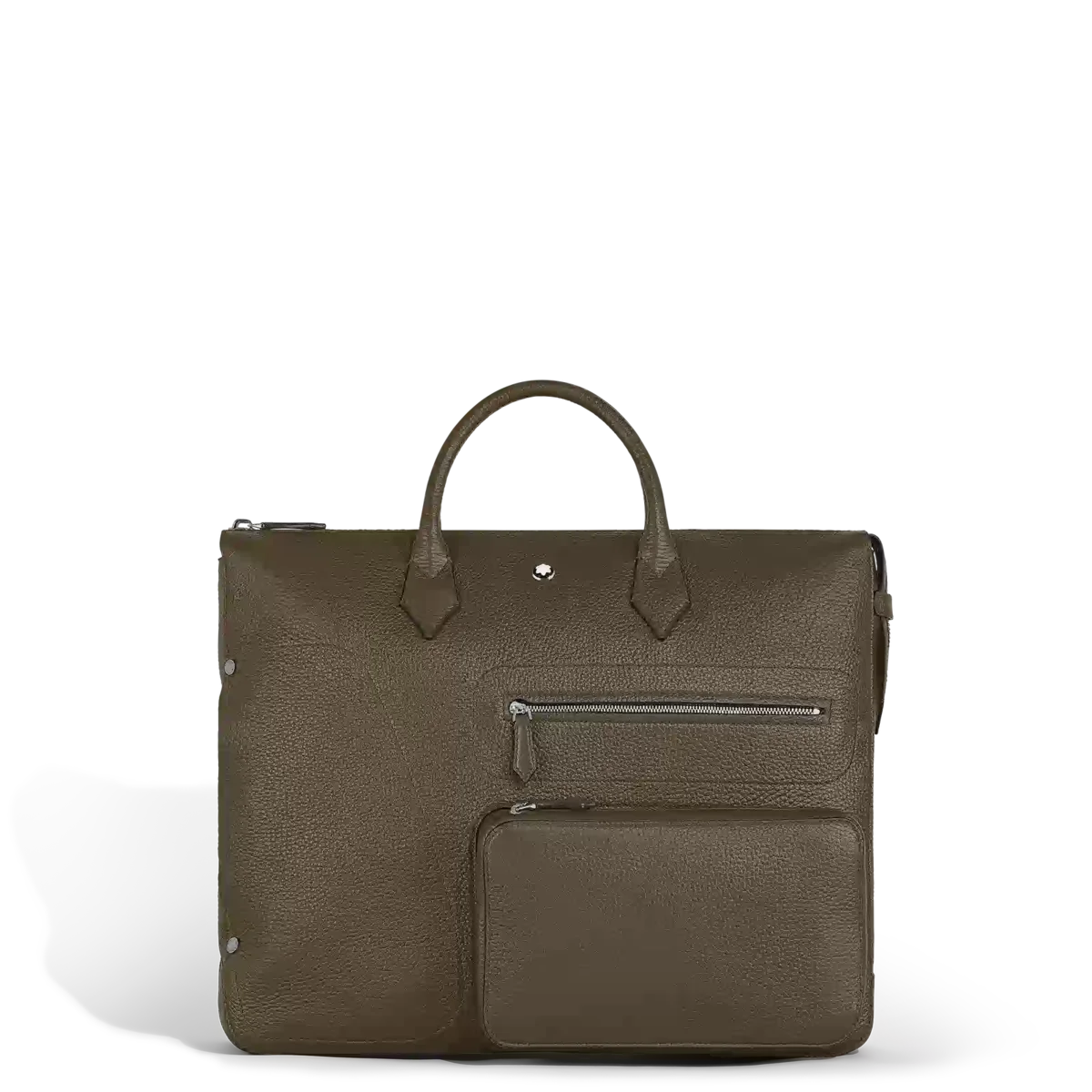 Die 24/7 Tasche definiert Luxus mit ihren weichen Formen und ihrem innovativen Design neu. Diese Tasche aus feinem khakifarbenem Narbenleder verfügt über ein beleuchtetes Emblem, das eine Hommage an die Ursprünge des Montblanc Sterns darstellt. Sie ist durchdacht konstruiert und verfügt über Außentaschen, in denen wichtige Utensilien griffbereit aufbewahrt werden können, sowie über charakteristische Details wie spitzenförmige Reißverschlüsse, Druckknöpfe und raffinierte Nähte. Die Tasche ist vielseitig einsetzbar und verfügt über zwei Tragegriffe und zwei abnehmbare Riemen, sodass sie mühelos in einen Rucksack verwandelt werden kann.