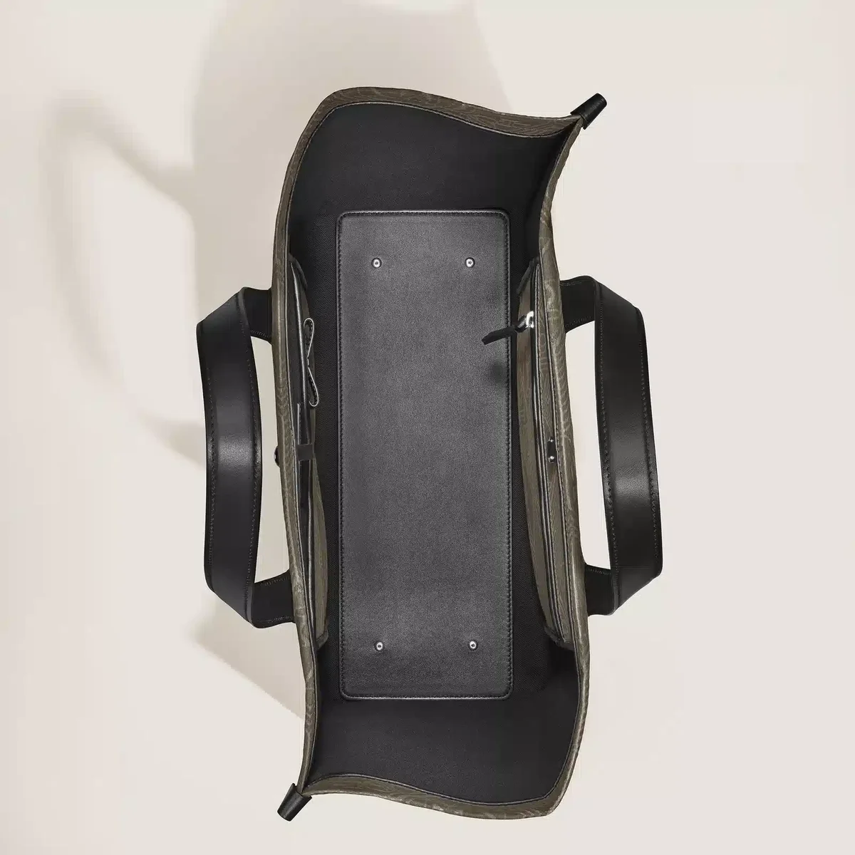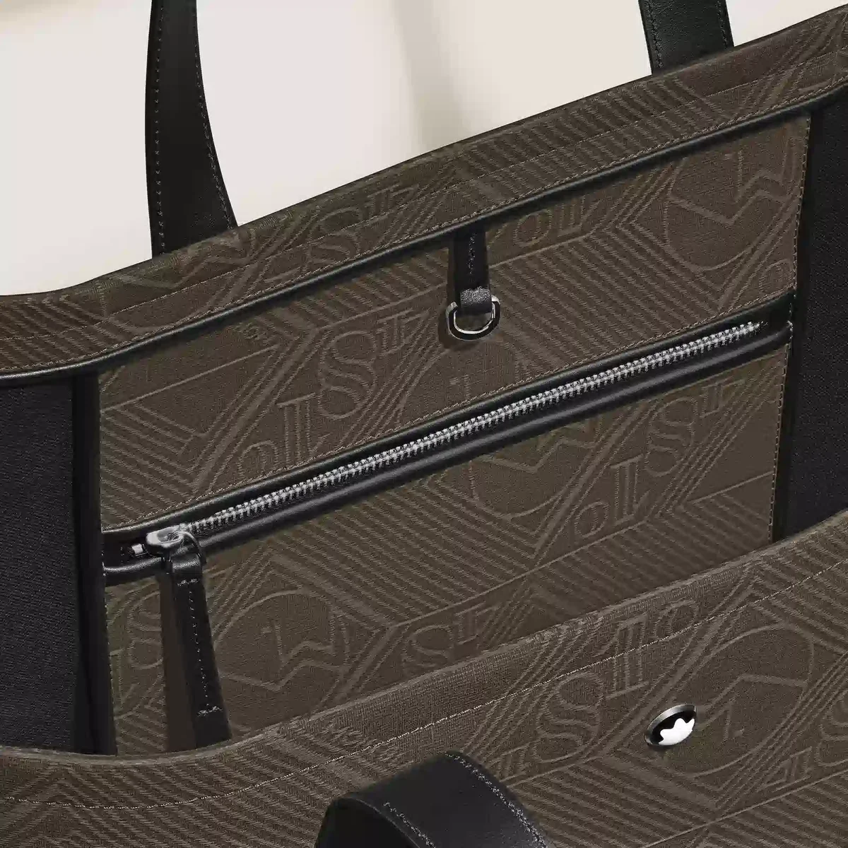 Als Teil der exklusivsten Linie von Montblanc besticht diese mittelgroße Tasche durch ihre weichen Formen, die durch das innovative Jacquard-Material 4810 noch unterstrichen werden. Das strukturierte, dreidimensionale Muster ist inspiriert von den Art-Déco-Entwürfen aus dem Archiv von Montblanc, den architektonischen Linien des Montblanc Haus und dem ikonischen 4810 m hohen Gipfel des Mont Blanc. Der Stoff wurde in sorgfältiger Jacquard-Webtechnik hergestellt, stückgefärbt und einem Stonewash-Verfahren unterzogen. Sein Khaki-Farbton strahlt einen raffinierten, gelebten Charme aus. Die Tasche wurde sowohl mit Blick auf Stil als auch auf Funktionalität entworfen und verfügt über schwarze Ledergriffe in Form einer Feder. Der geräumige Innenraum umfasst eine Reißverschlusstasche, zwei offene Fächer und zwei Stifthalterungen. Ident-Nr. MB220258 Abmessungen 400 mm * 140 mm * 330 mm