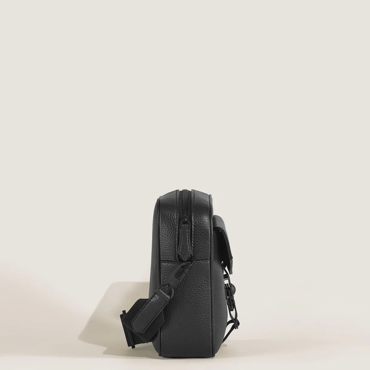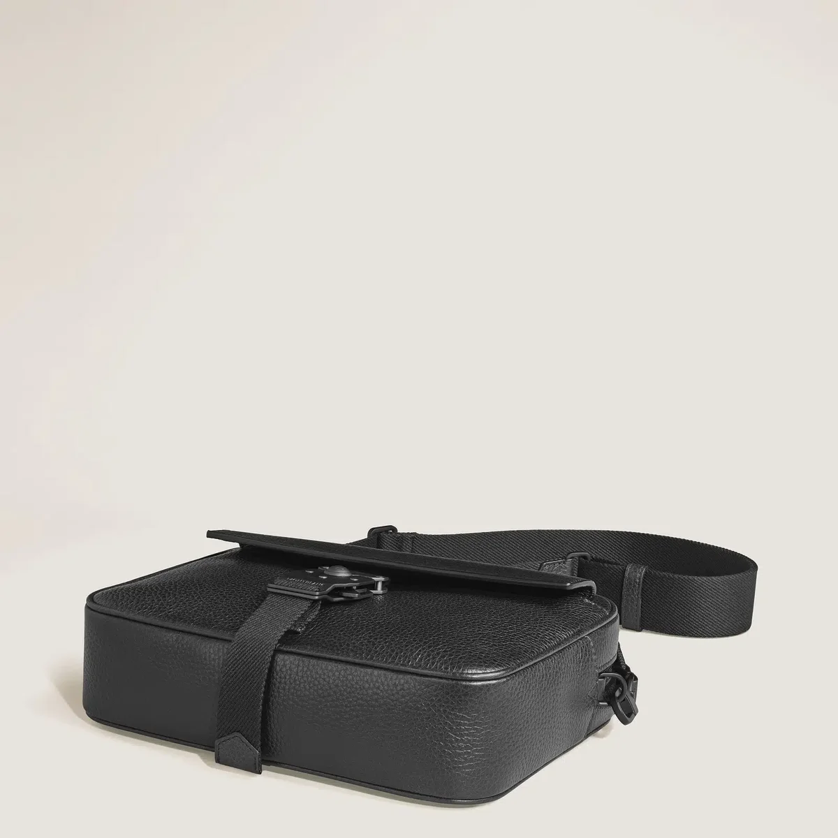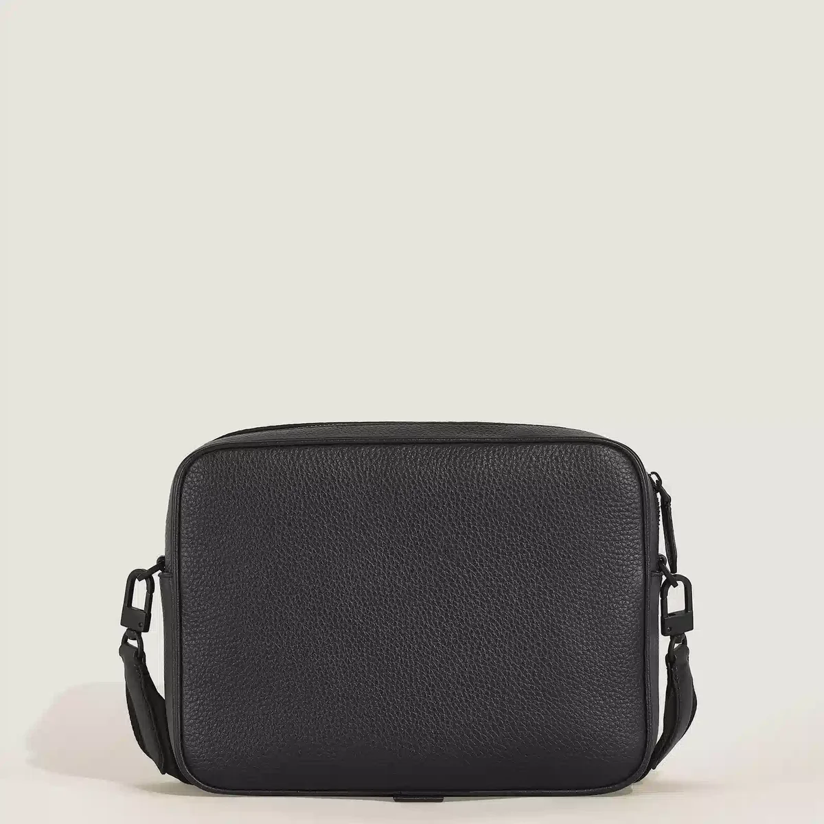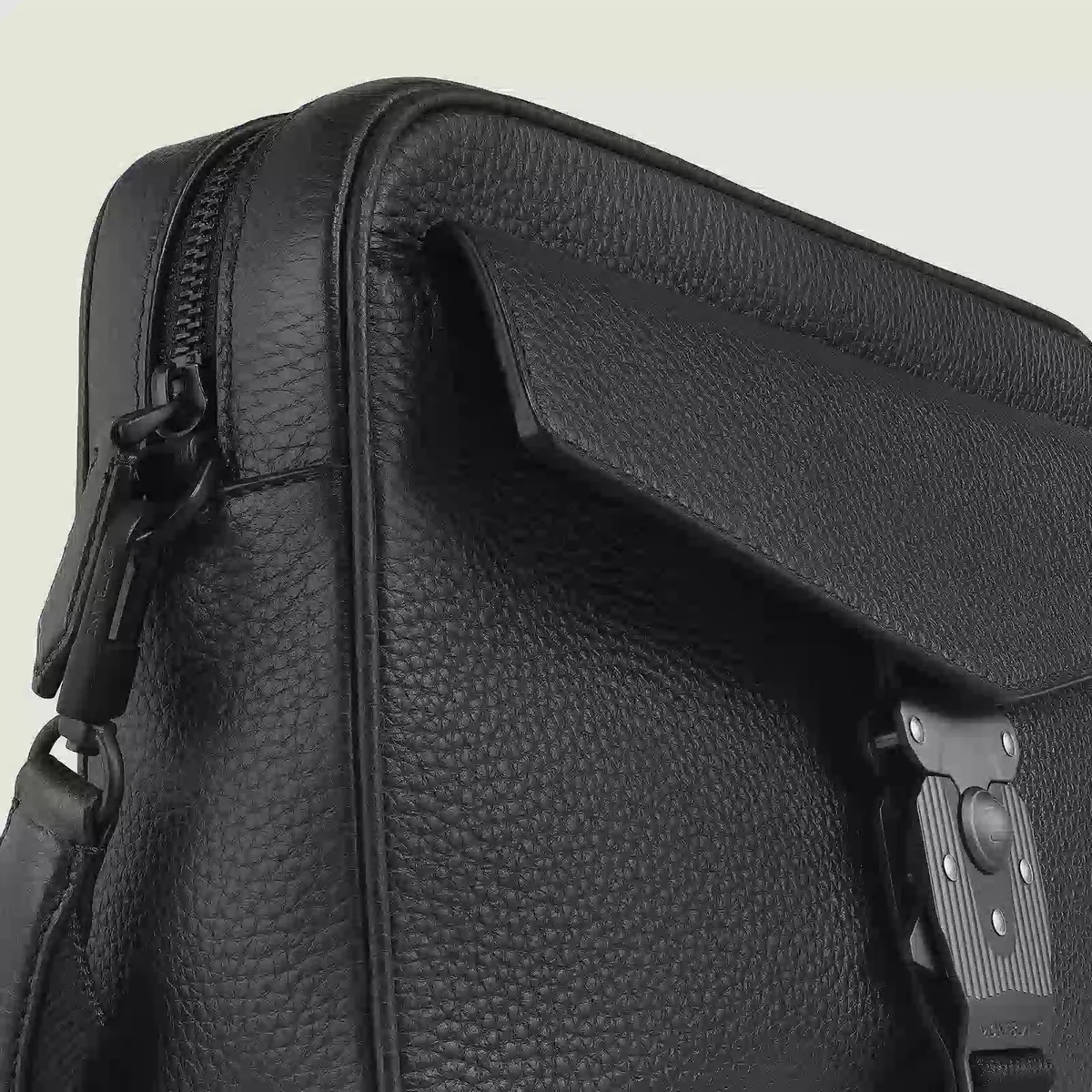 Entdecken Sie die elegante Messenger-Tasche aus strukturiertem und dennoch weichem schwarzem Narbenleder mit dem sicheren M LOCK 4810-Verschluss auf der Vorderseite. Das Design umfasst ein geräumiges Hauptfach, eine leicht zugängliche Fronttasche unter der Klappe und eine offene Innentasche, in der Sie Ihre Gegenstände übersichtlich verstauen können. Für eine persönliche Note kann der vordere Verschluss individuell gestaltet werden, um die Tasche zu Ihrem Unikat zu machen. Der verstellbare und abnehmbare Schulterriemen sorgt für bequemes, vielseitiges Tragen mit mühelosem Stil.