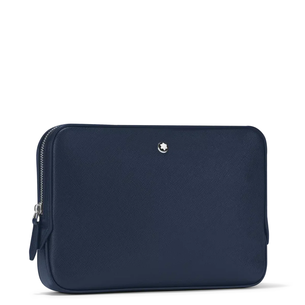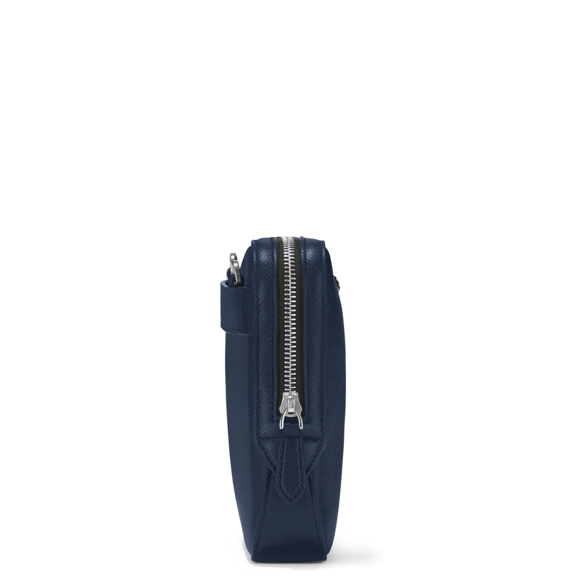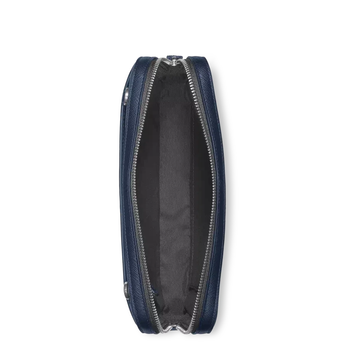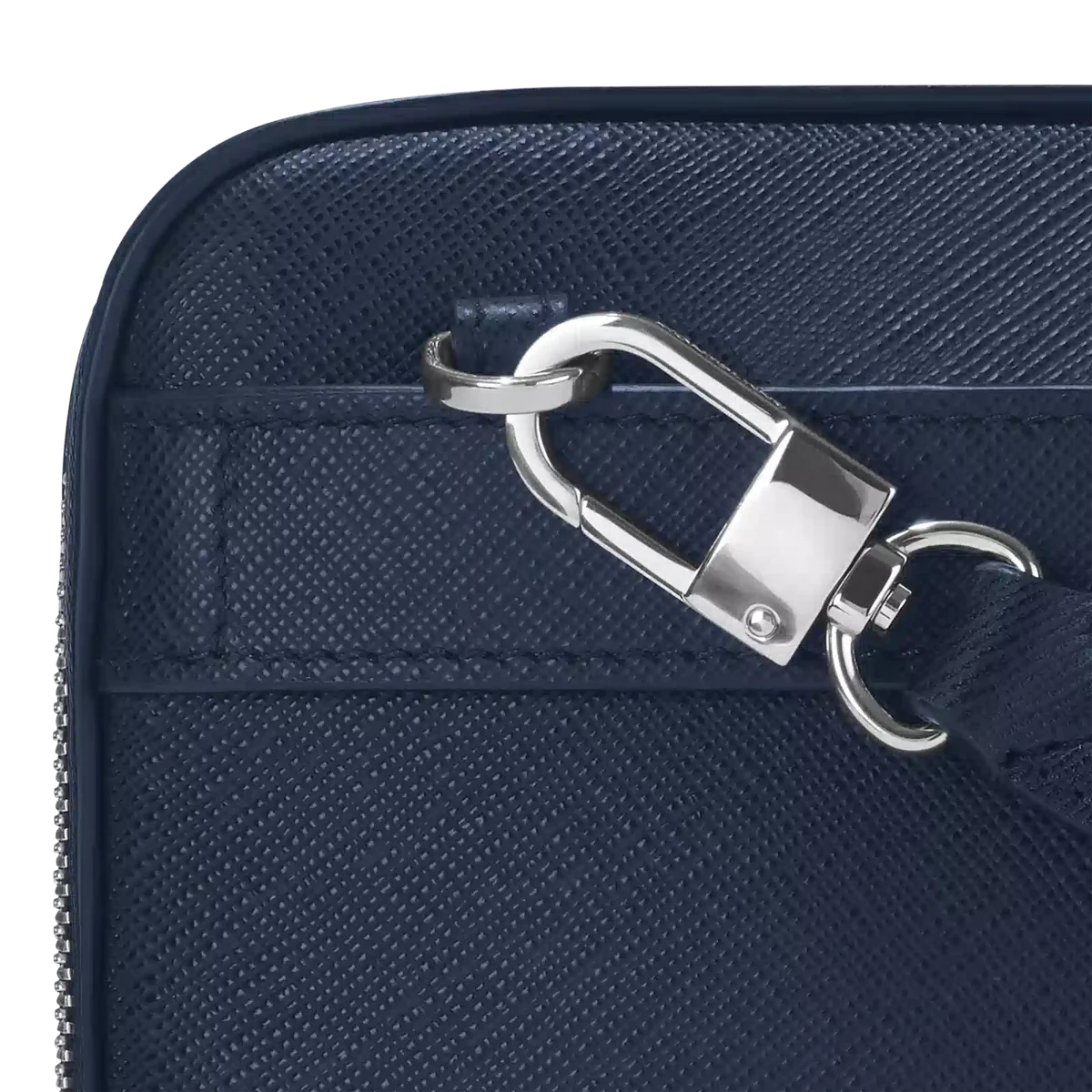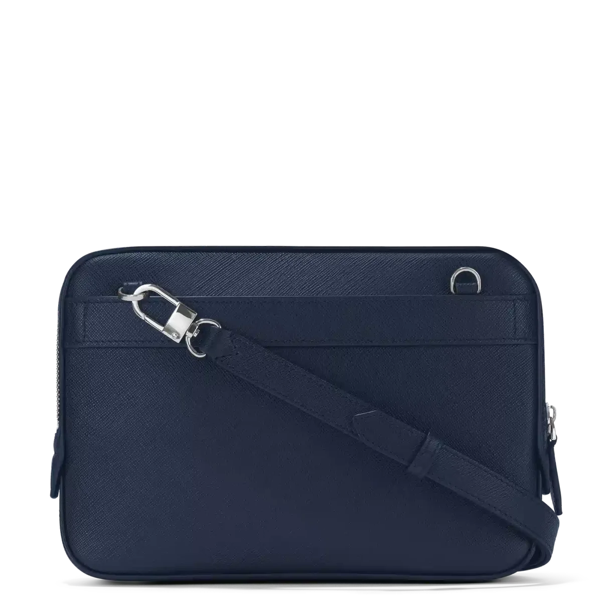Diese funktionale und vielseitige kompakte Messenger-Tasche aus tintenblauem Saffiano-Leder kann bei einem Abend in der Stadt in der Hand getragen oder unterwegs an größeren Taschen befestigt werden. Eine offene Tasche im Innenfach ermöglicht Ihnen einen schnellen Zugriff auf Ihre wichtigsten Utensilien.