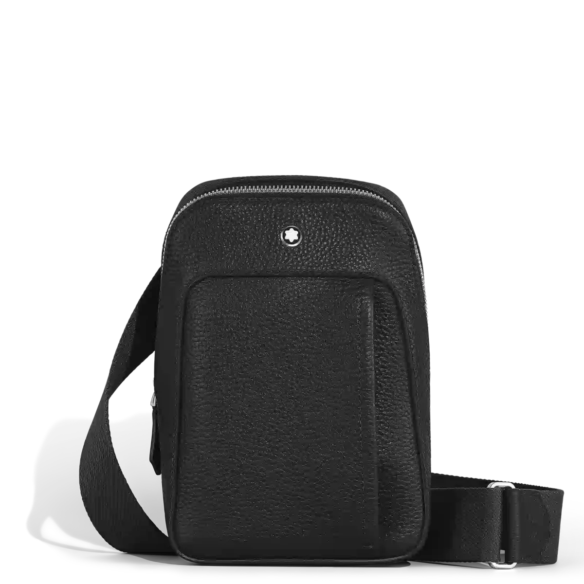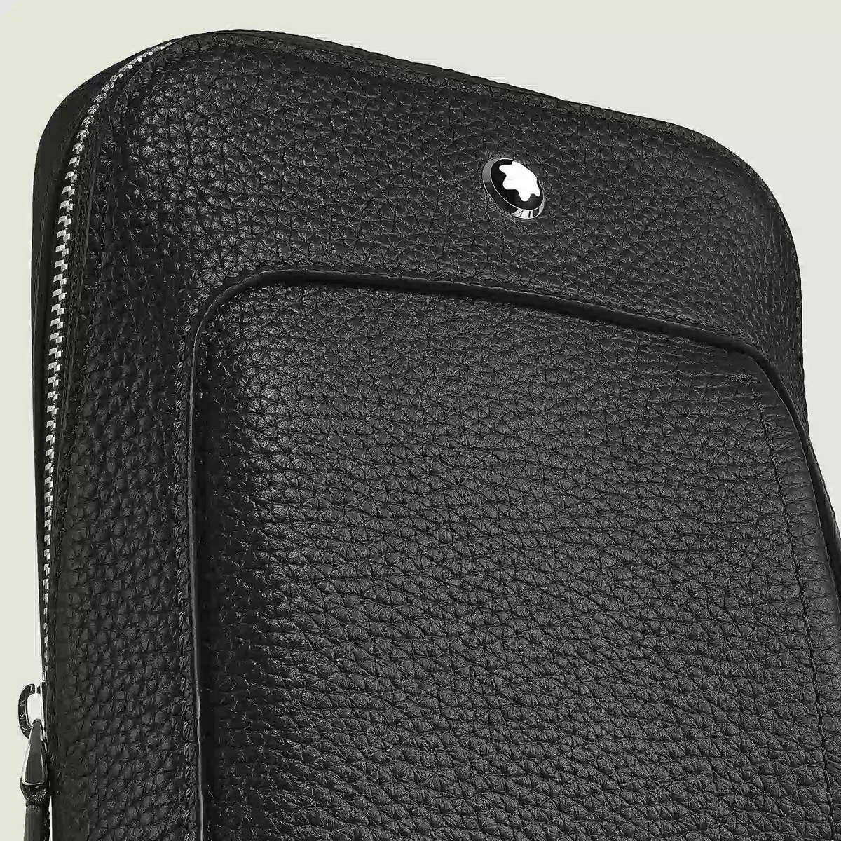 Die Alltagstasche ist aus geschmeidigem schwarzem Narbenleder gefertigt und hat weiche, elegante Formen. Sie wurde für diejenigen entworfen, die mühelosen Luxus und leichten Zugriff schätzen. Sie eignet sich perfekt für einen lässigen Stil für unterwegs und verfügt über spitzenförmige Reißverschlüsse und ein Hauptfach mit drei Kartenfächern und einer offenen Tasche sowie eine Außentasche mit Reißverschluss für wichtige Utensilien. Mit ihrem verstellbaren Riemen bietet diese Tasche eine raffinierte Möglichkeit, Ihre Habseligkeiten griffbereit zu verstauen.
