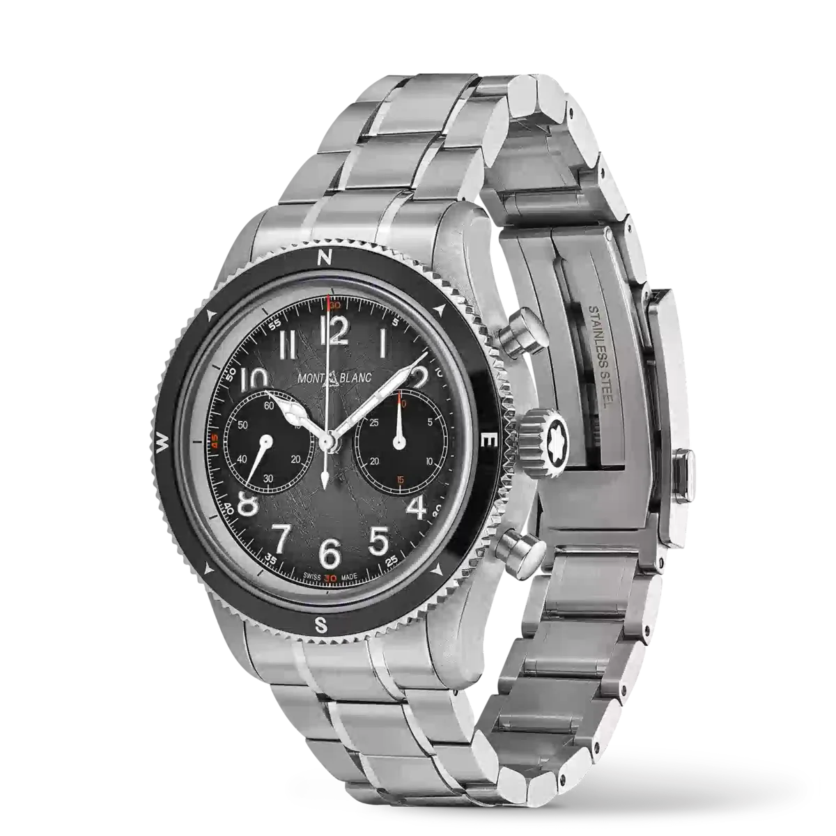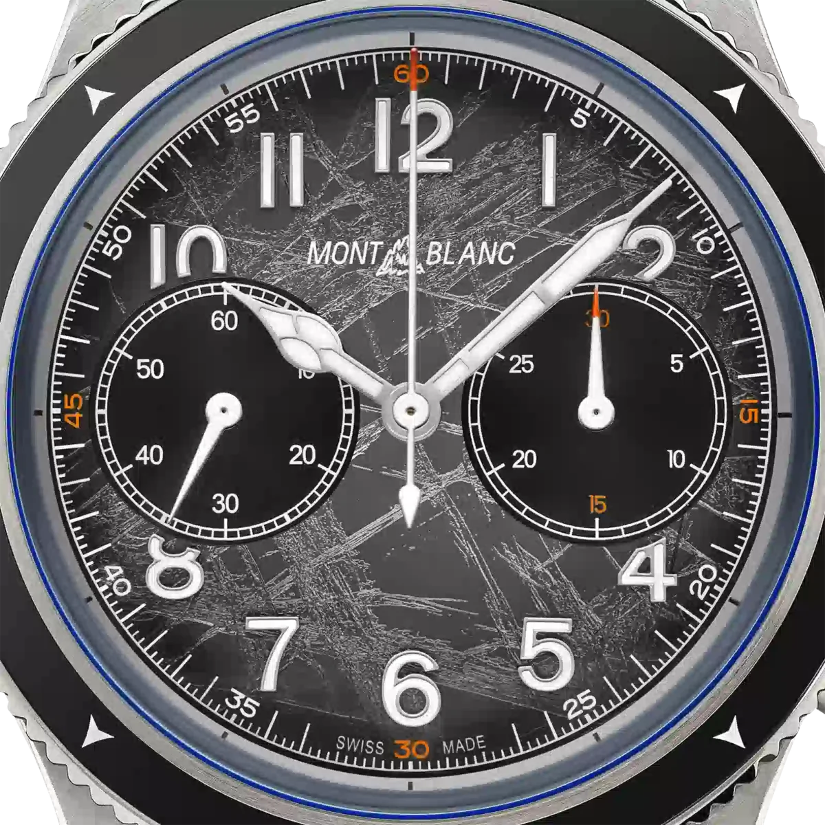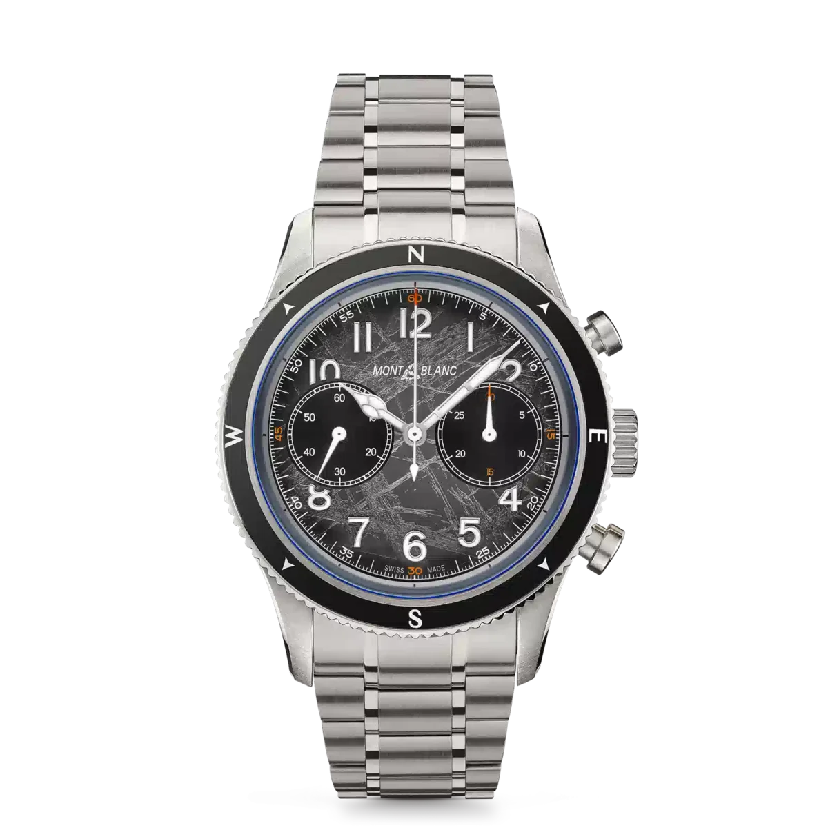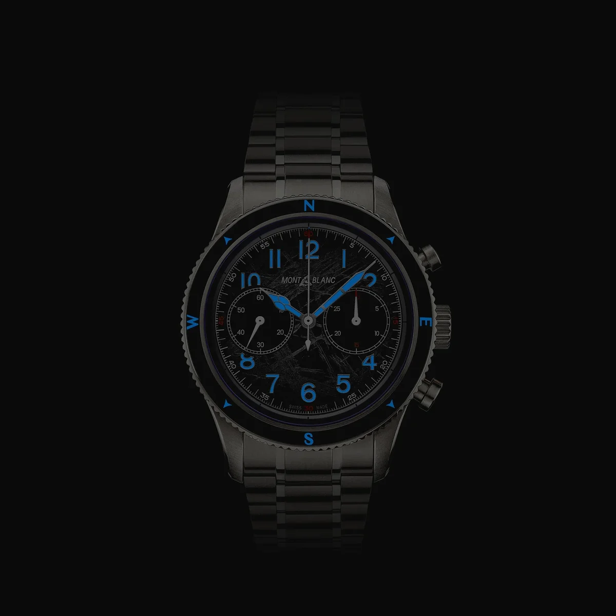 Als Hommage an die höchsten Gipfel der Welt und die Alpinisten, die es wagen, sie unter extremen Bedingungen zu besteigen, ist der Montblanc 1858 Automatic Chronograph 0 Oxygen The 8000 in einem 42-mm-Edelstahlgehäuse untergebracht, das vollständig sauerstofffrei ist. Dies hat für Entdecker mehrere Vorteile, da es Beschlagen verhindert und Oxidation verhindert, wodurch das Uhrwerk länger hält und eine höhere Präzision aufweist. Der Zeitmesser wird vom Automatik-Chronographen MB 25.13 angetrieben und verfügt über eine geriffelte, bidirektionale schwarze Keramiklünette mit lumineszierenden Himmelsrichtungen sowie ein dunkelgraues Zifferblatt mit Sfumato-Gletschermuster, orangefarbenen Akzenten und blauer Lumineszenz. Der Gehäuseboden ist mit dem „Spirit of Exploration”-Motiv graviert und die Uhr ist mit einem austauschbaren, konischen Edelstahlarmband mit Feineinstellungssystem ausgestattet. Ident-Nr. MB130983