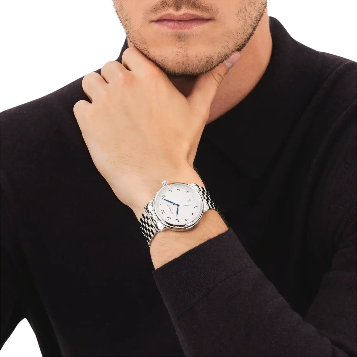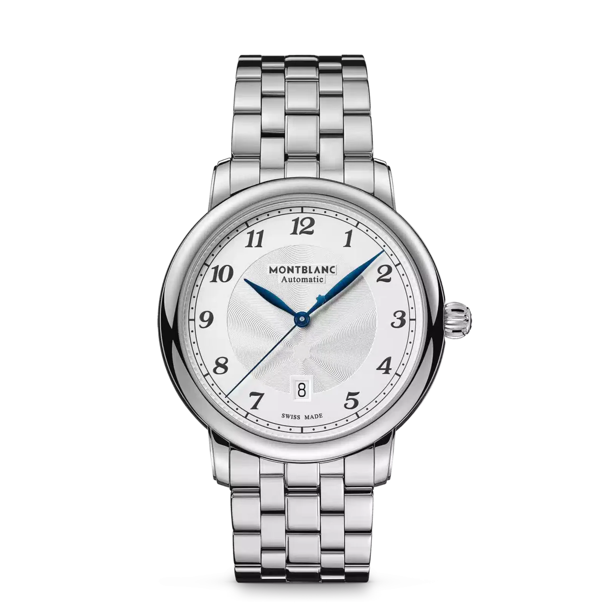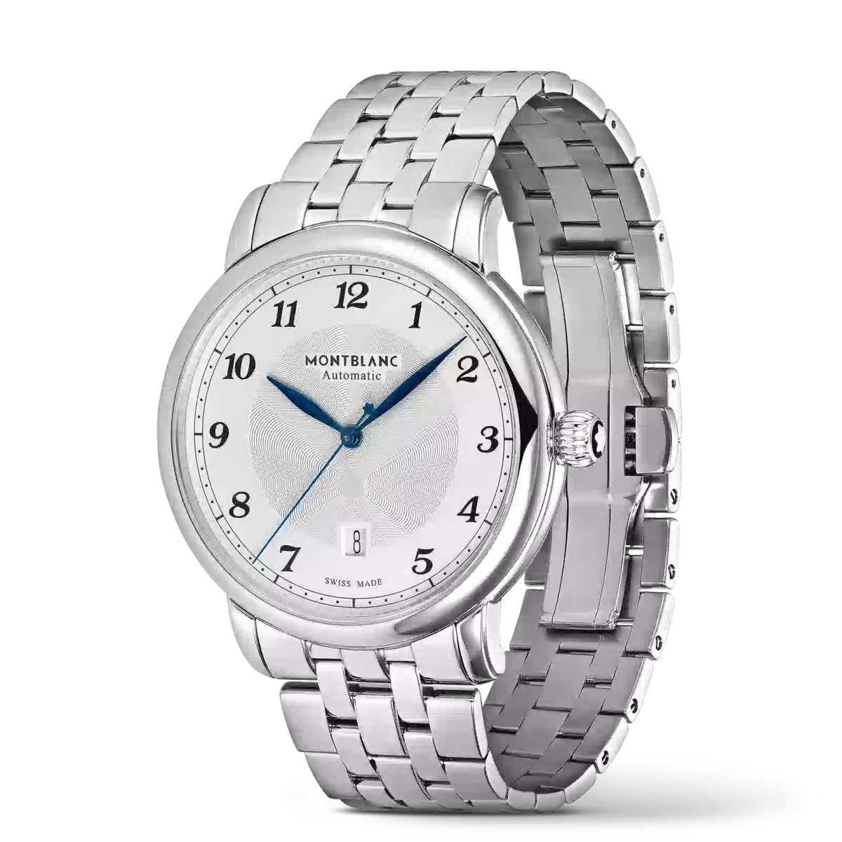 Die Montblanc Star Legacy Kollektion ist inspiriert vom Erbe von Minerva und den Taschenuhren des Unternehmens, die im späten 19. und frühen 20. Jahrhundert hergestellt wurden. Entsprechend den Designcodes der Produktlinie verfügt die Montblanc Star Legacy Automatic Date über ein raffiniertes silberweißes Zifferblatt mit dem Montblanc-Guilloché-Muster „Exploding Star“, arabischen Ziffern, blattförmigen Zeigern, einem „Filet Sauté“-Guilloché-Motiv und einer Eisenbahnminuterie. Die Uhr ist mit dem Automatikwerk MB 24.17 ausgestattet und verfügt über eine Stunden-, Minuten- und Sekundenanzeige in der Mitte sowie eine Datumsanzeige in einem Fenster bei 6 Uhr. Sie wird in einem 42-mm-Edelstahlgehäuse geliefert und ist mit einem Edelstahlarmband ausgestattet. Ident-Nr. MB128682