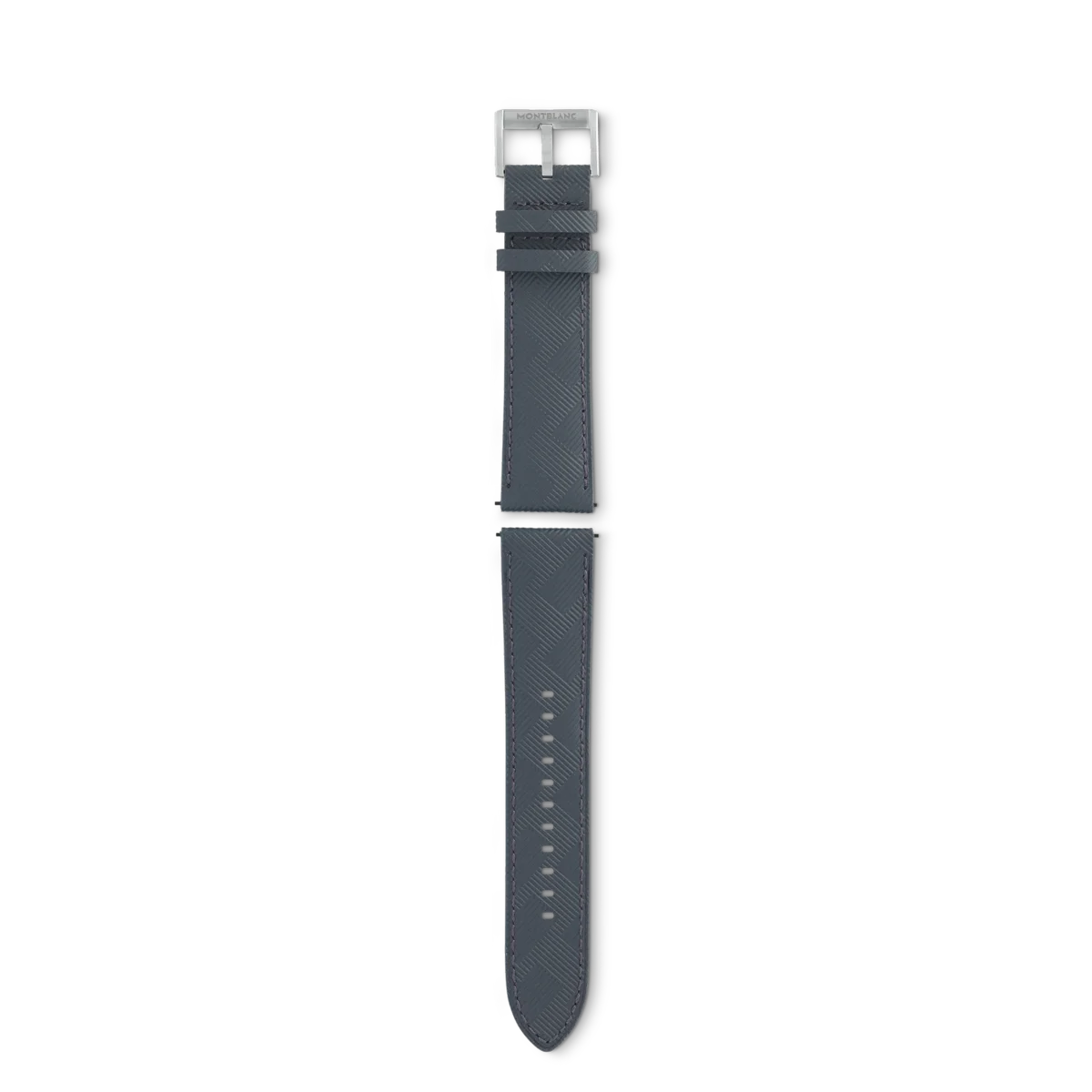 22 mm breites graues Kalbslederarmband mit Montblanc Extreme 3.0-Prägung und verstellbarer Dornschließe aus Edelstahl.