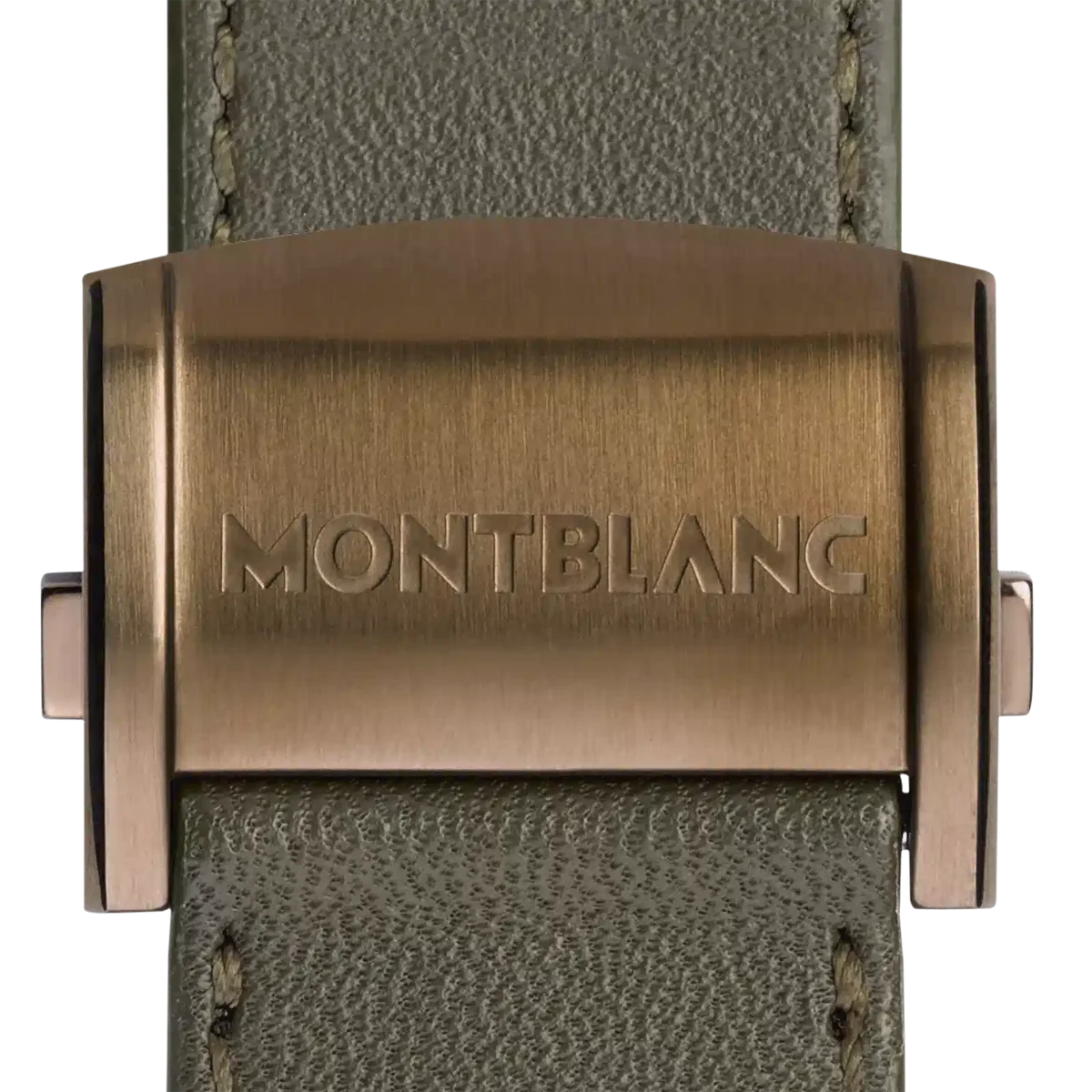 22 mm breites Armband aus khakifarbenem Kalbsleder mit verstellbarer bronzefarbener Faltschließe aus Edelstahl. Kompatibel mit allen Montblanc Summit Smartwatches.