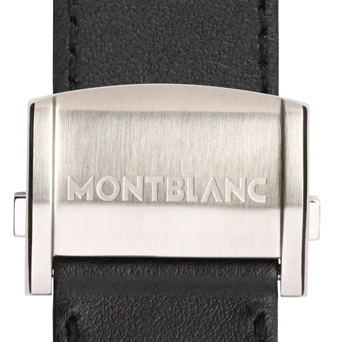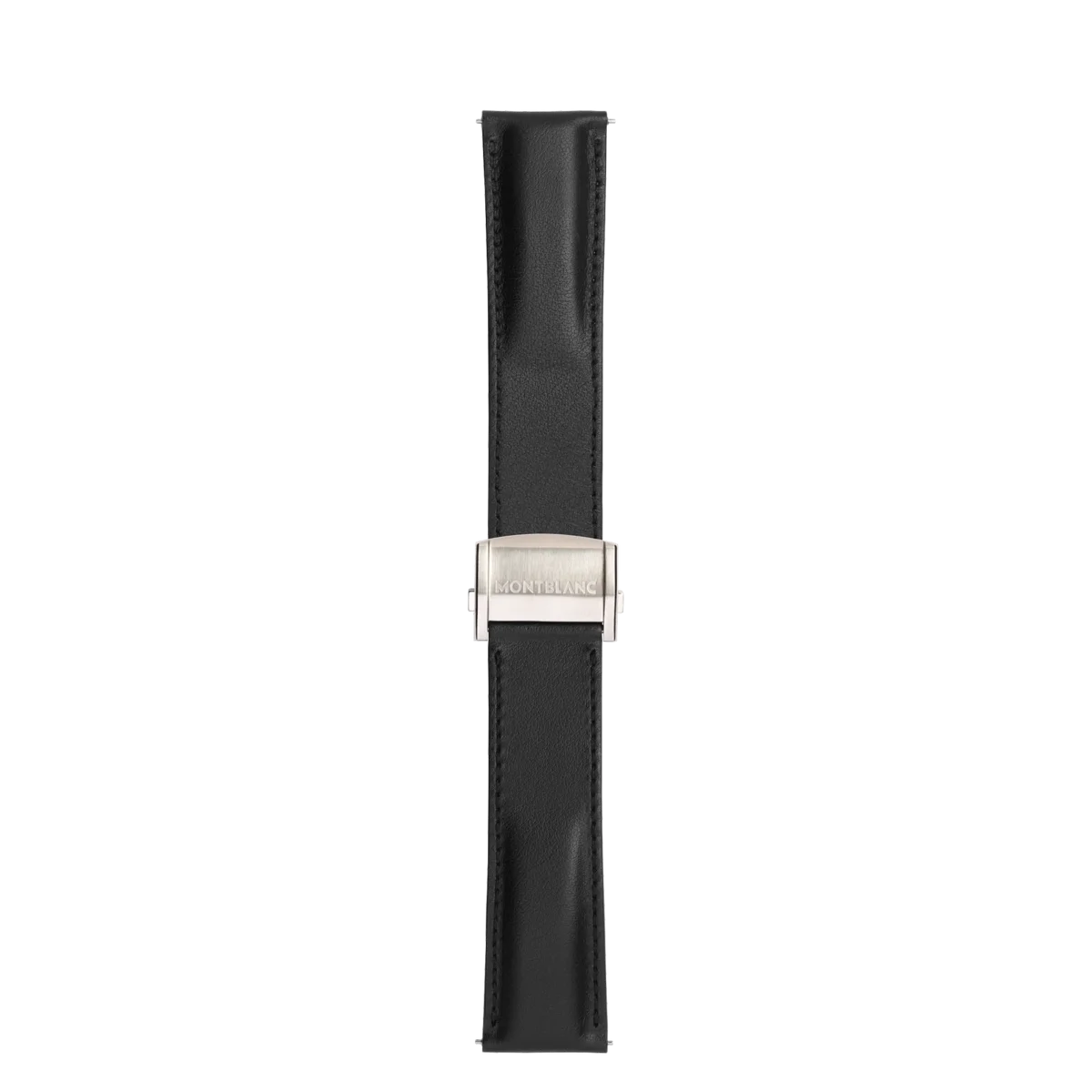 22 mm breites Armband aus schwarzem Kalbsleder mit verstellbarer Schließe aus Edelstahl. Kompatibel mit allen Montblanc Summit Smartwatches.